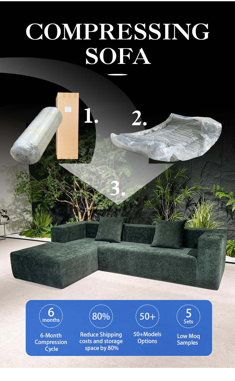 S221green 2024 popular living room compression modern home furniture modular L shape compressed fabric velvet couch sofa set