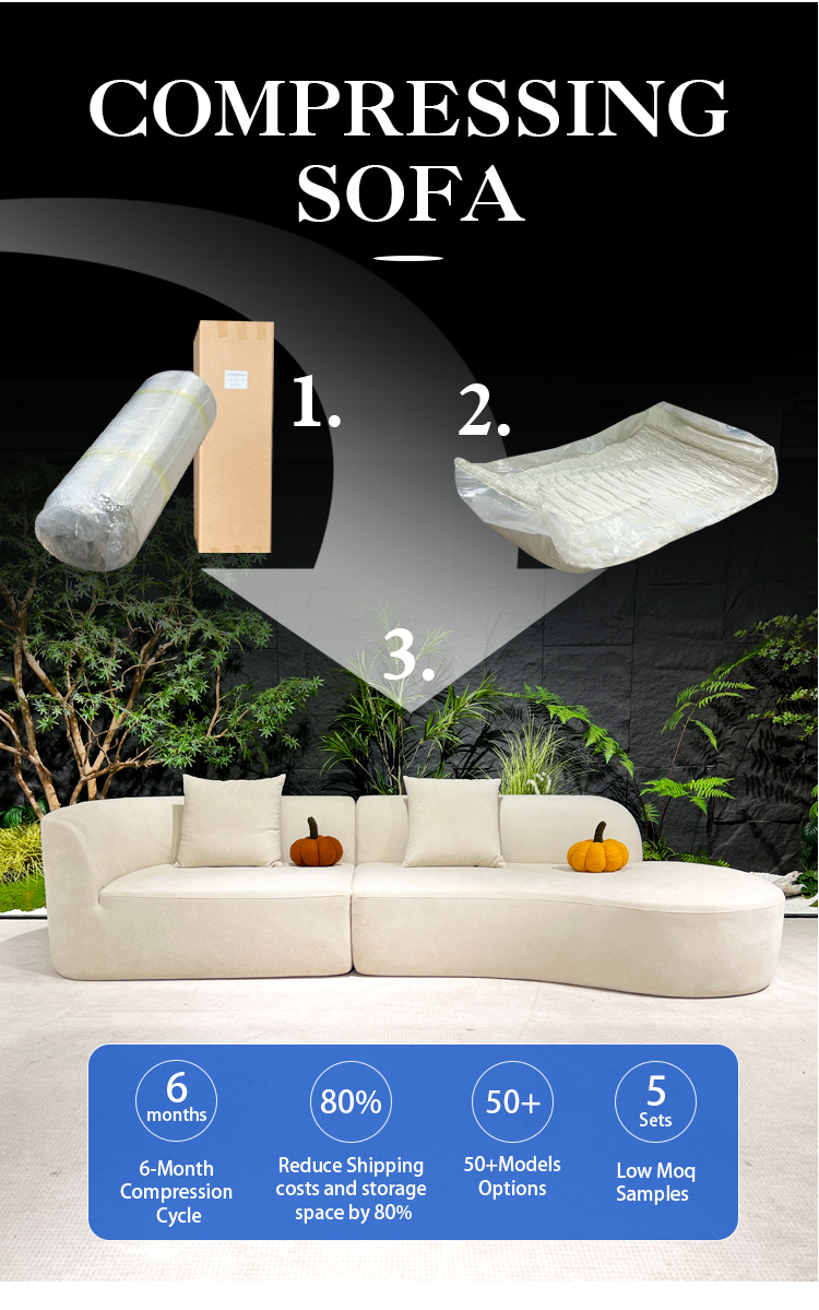 S222 Italian design modern compressible living room home furniture L shape modular vacuum small package fabric compression sofa set