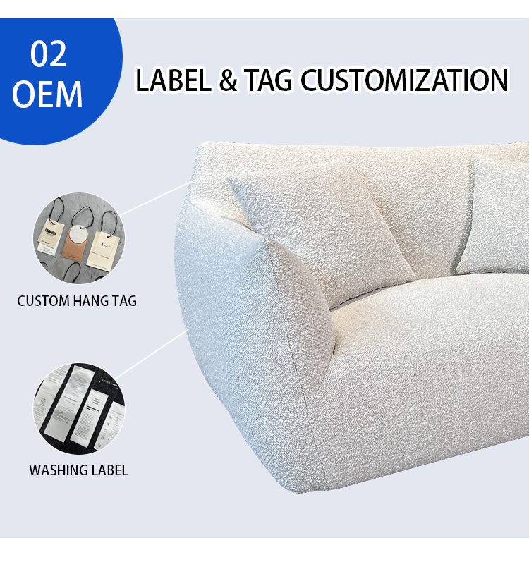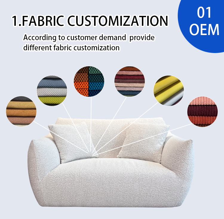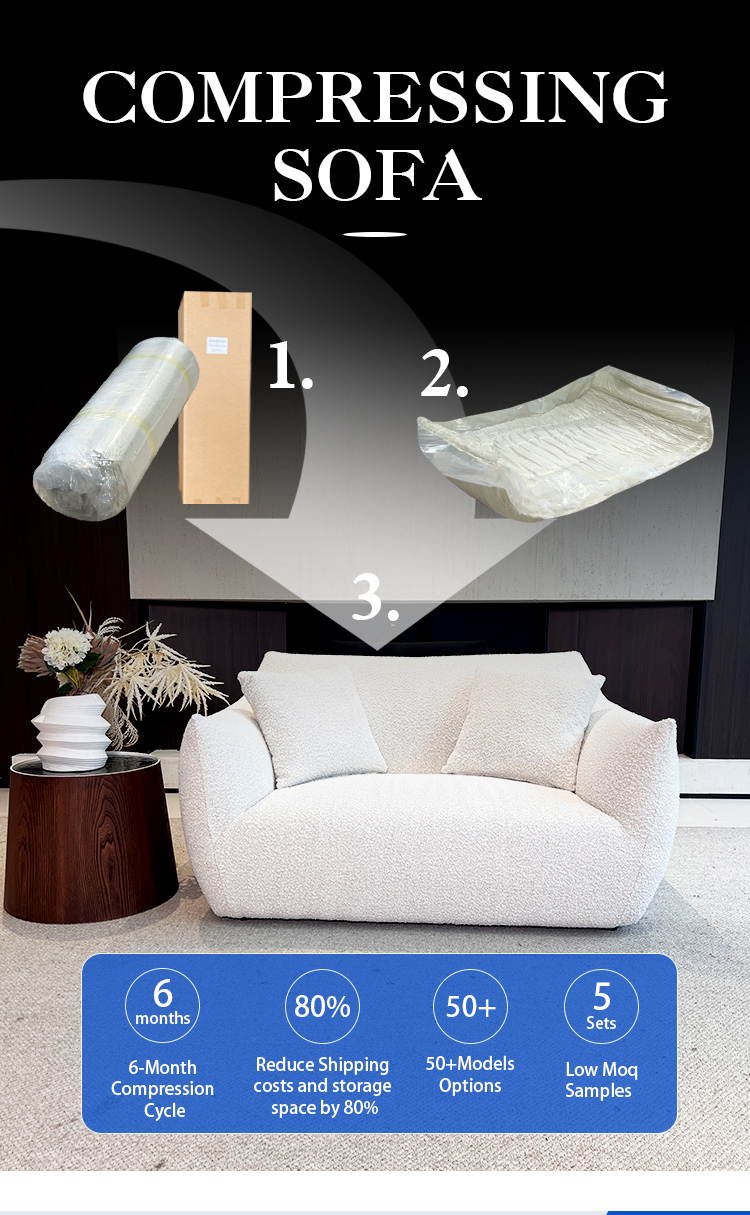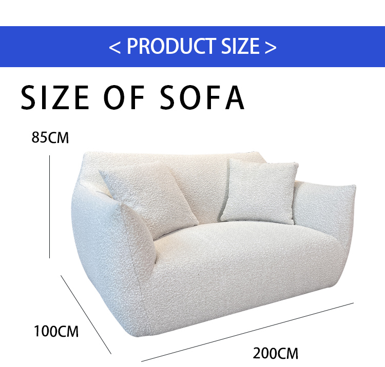 S254 Oem Factory Modern Minimalist White Teddy Fabric Cream Two Seater Beanbag Vacuum Compressed Sofa for Wholesaler
