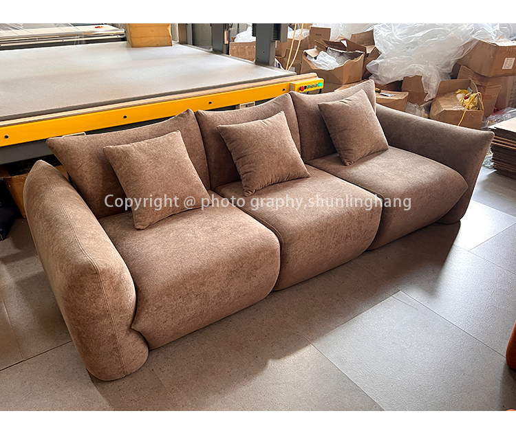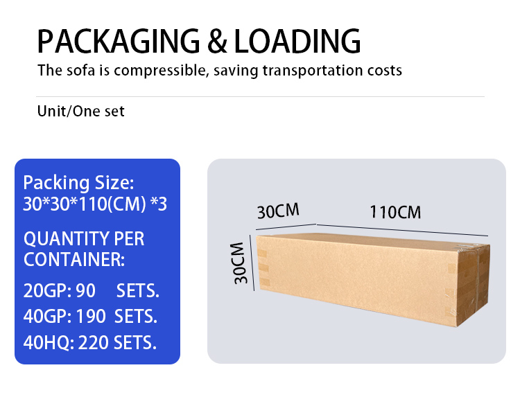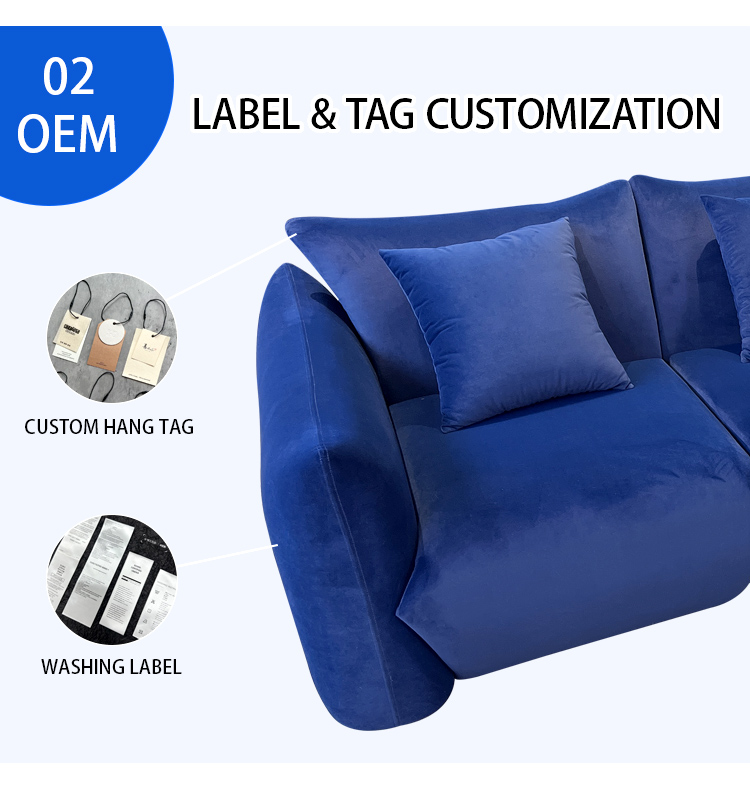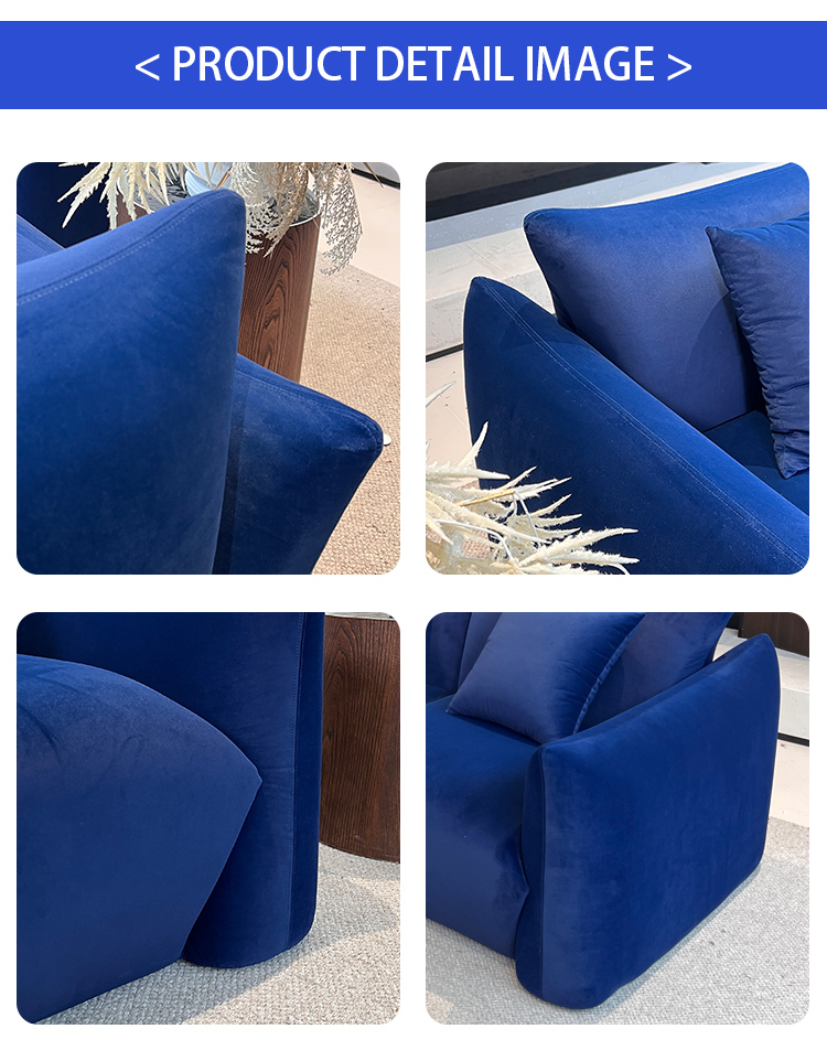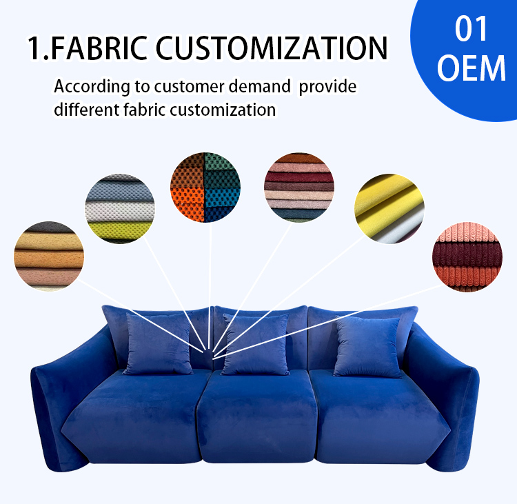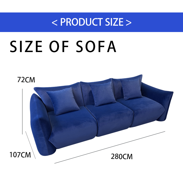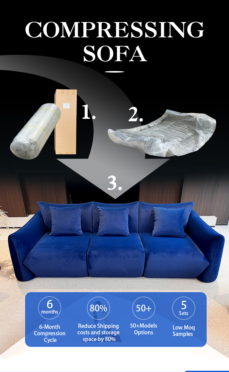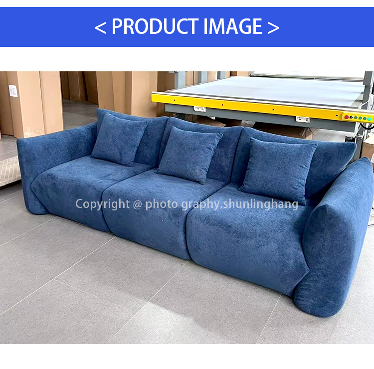 S218-3 OEM Factory Minimalist Blue Fabric 3 Seater Puffy Comfortable Boneless Couch Sponge Filling Compressed Sofa for Living Room
