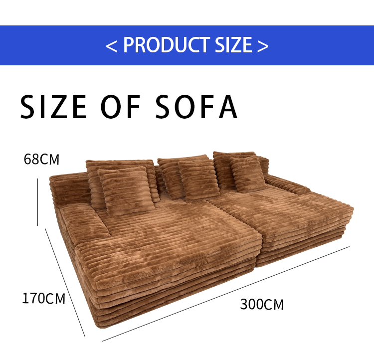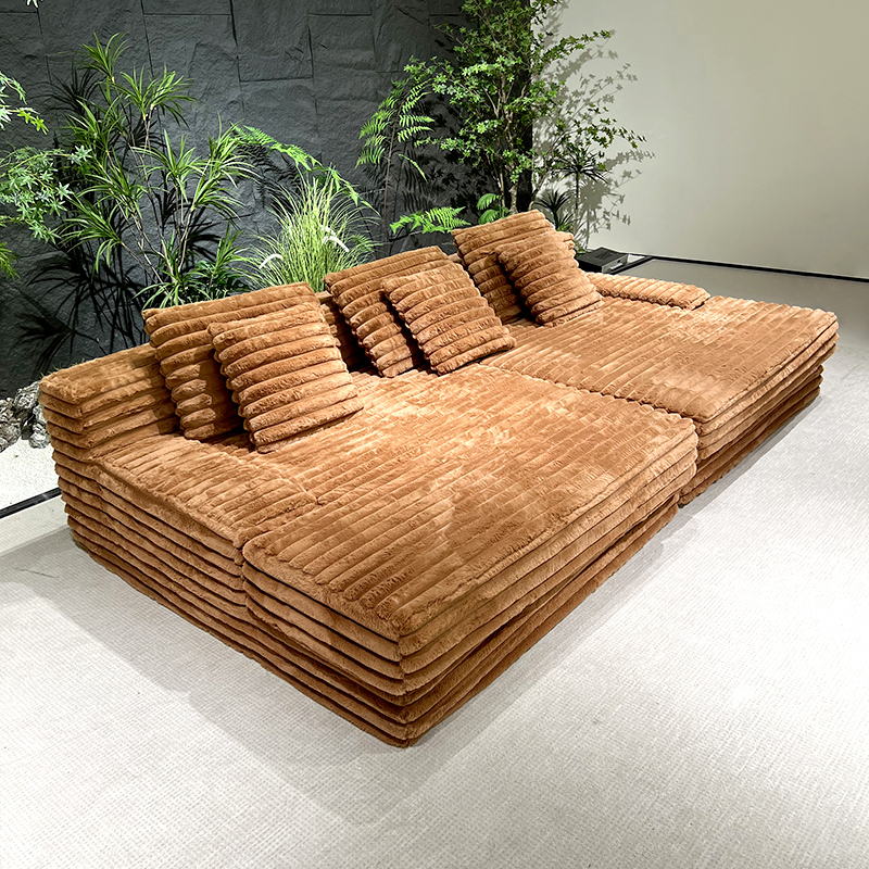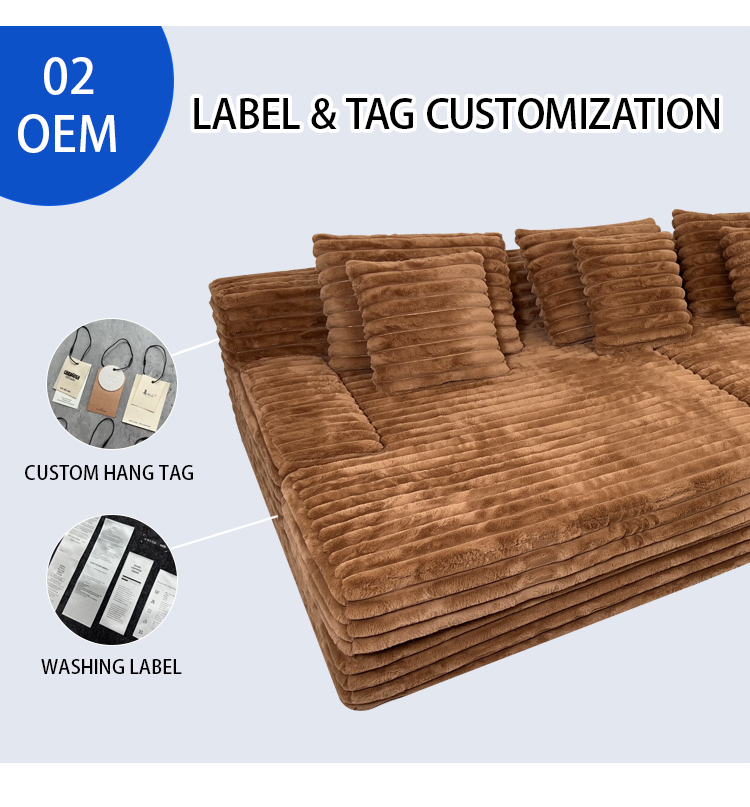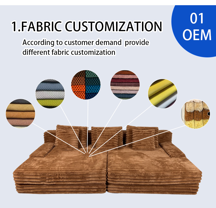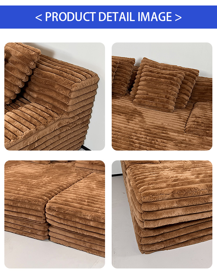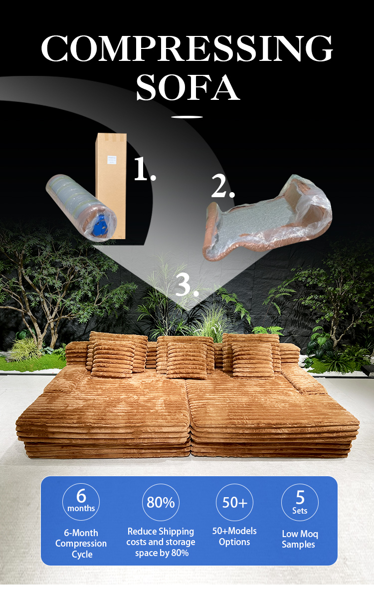 S232 OEM Factory Modern Corduroy Fabric Design Modular Sectional Boneless Couch Vacuum Compressed Sofa with Ottoman
