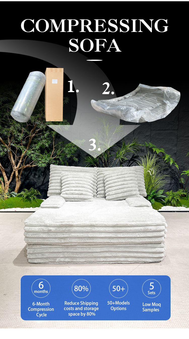 S239 Wholesale Corduroy Oversized Boneless Chaise Lounge Chair Couch Indoor Living Room Vacuum Compressed Sofa for Living Room