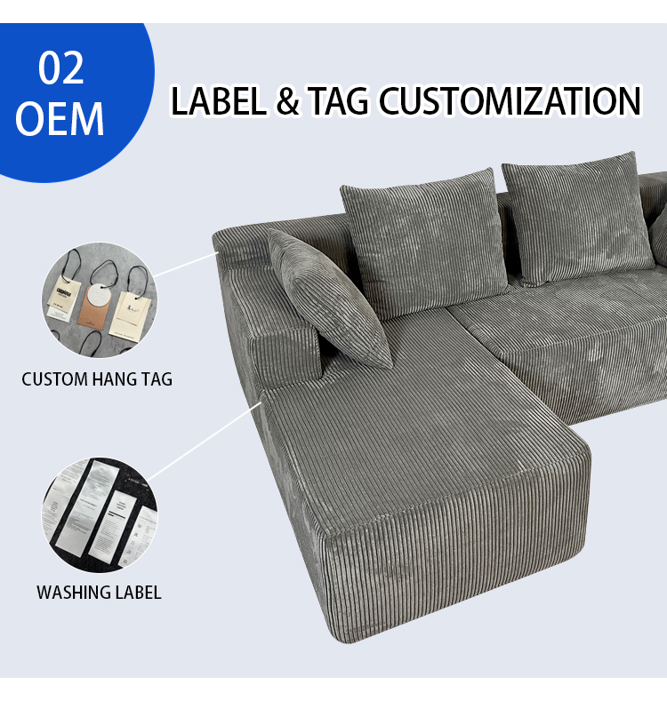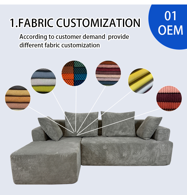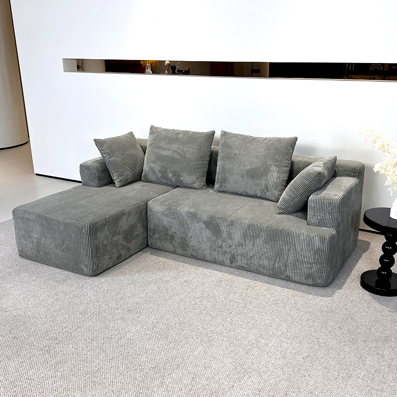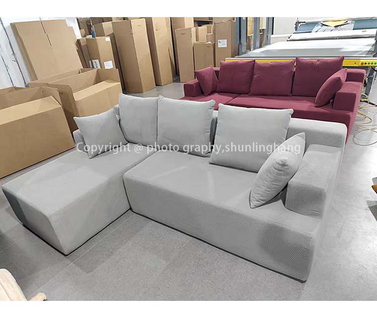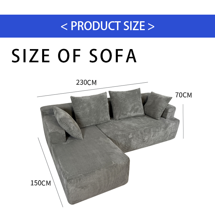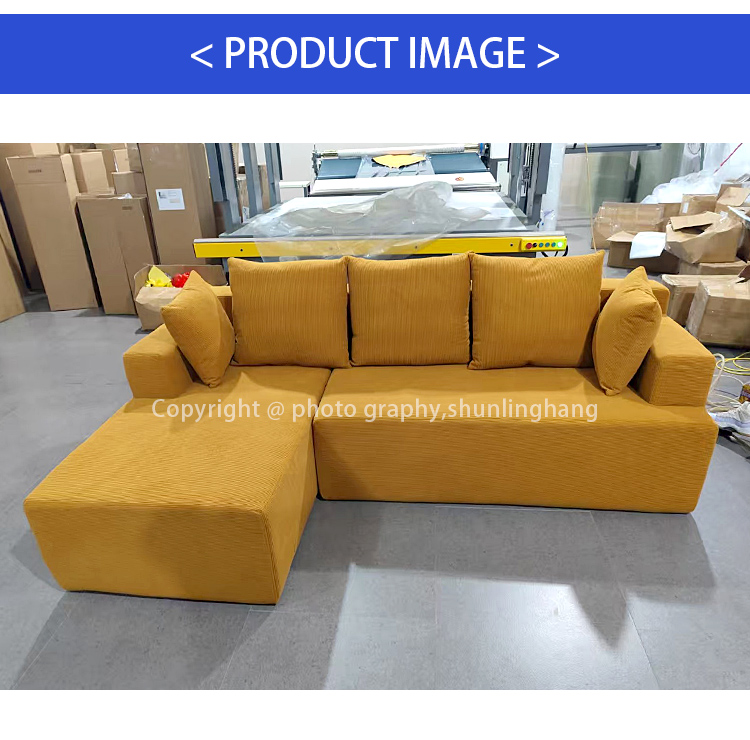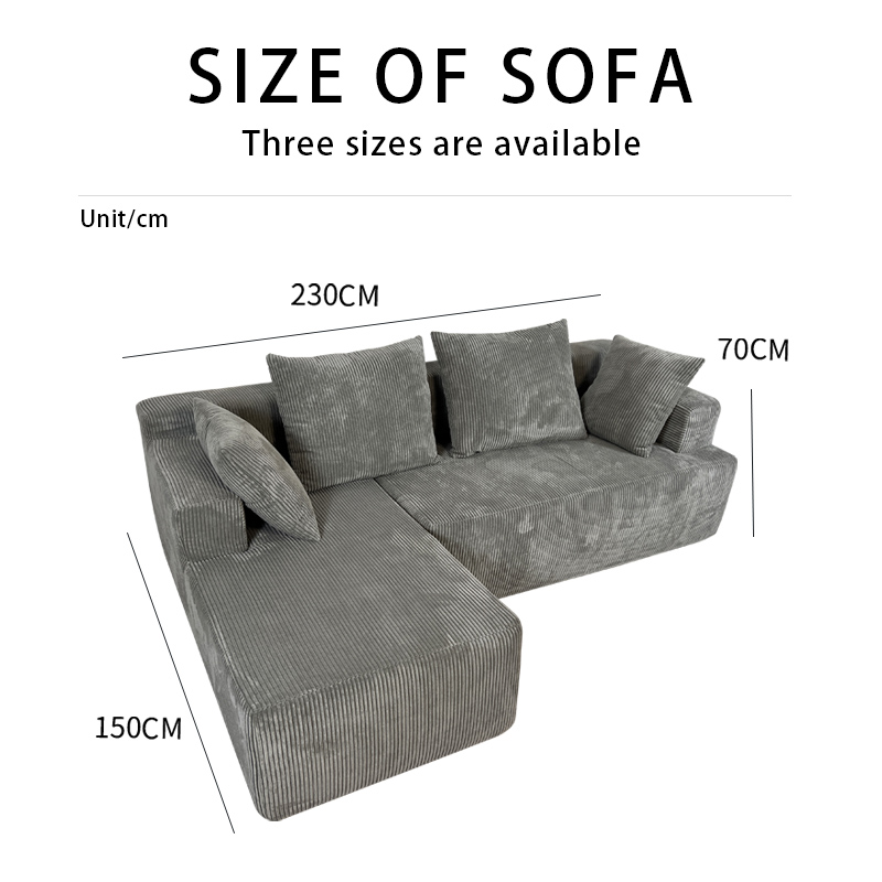 S240 OEM Factory Corduroy Fabric Foam Small Corner L Shape 3 Seater Vacuum Sofa Space Saving Compressed Sectional Sofa