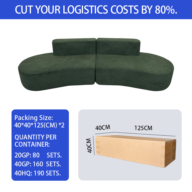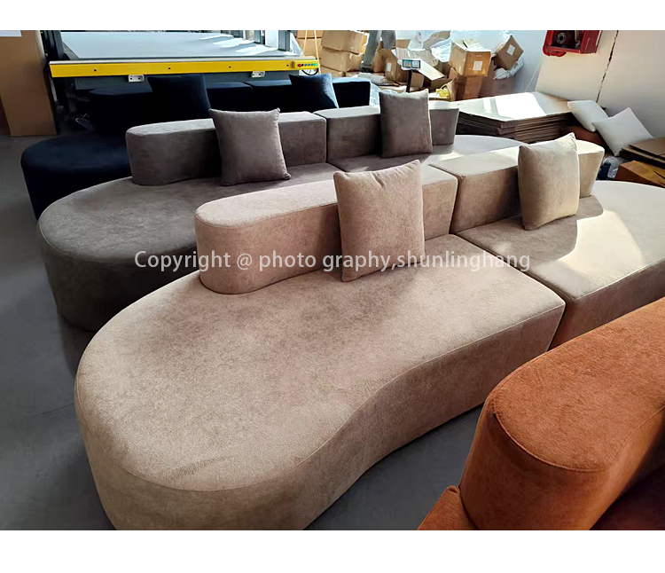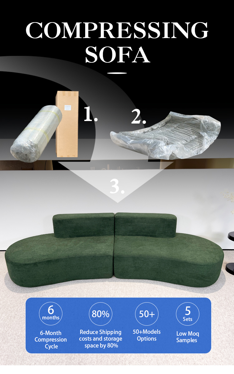 S241-3 Wholesale Factory Italian Minimalist Design Curved Shape 3 Seater Boneless Couch Foam Filling Compressed Sectional Sofa